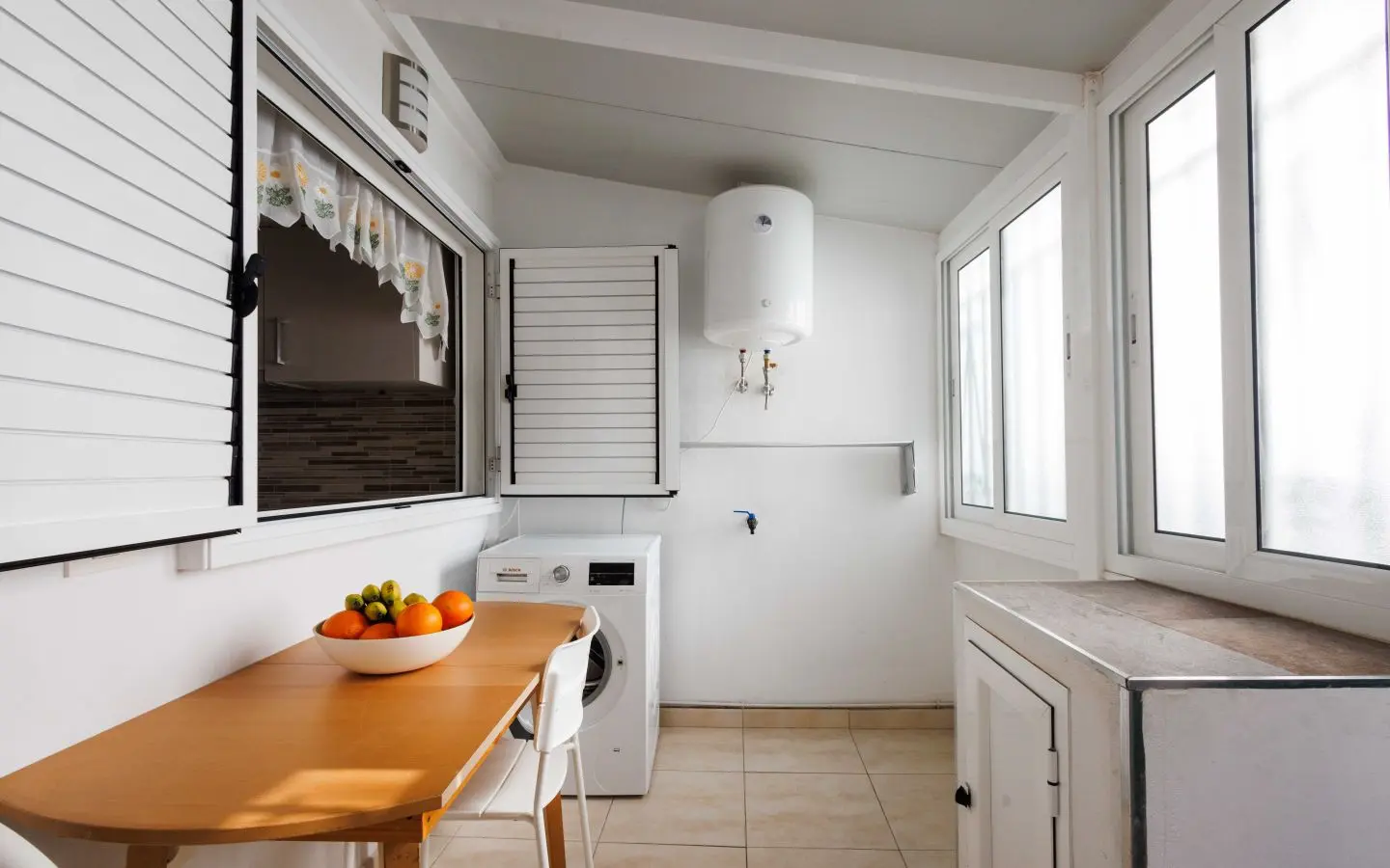 El apartamento le da la bienvenida con una entrada práctica en la parte trasera, donde encontrará mucho espacio para guardar maletas, equipos de limpieza y cualquier otra cosa que facilite la vida familiar. El dormitorio luminoso con cama doble tiene su propio balcón con vistas a una calle tranquila. El segundo dormitorio está amueblado con una cómoda cama individual, lo que hace que el apartamento sea perfecto para familias con niños. Ambos dormitorios tienen armarios separados para un almacenamiento organizado.
