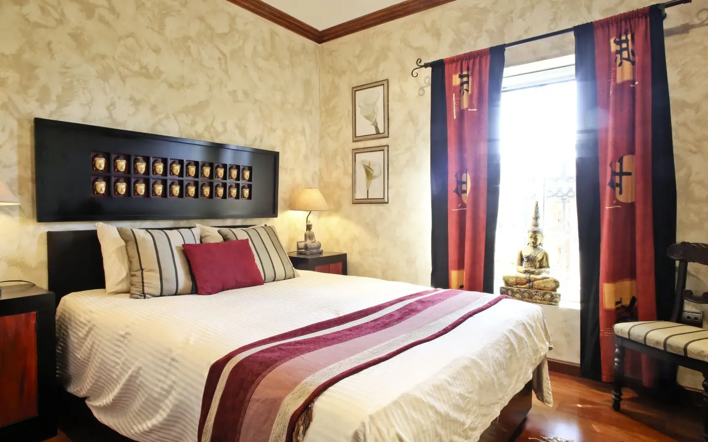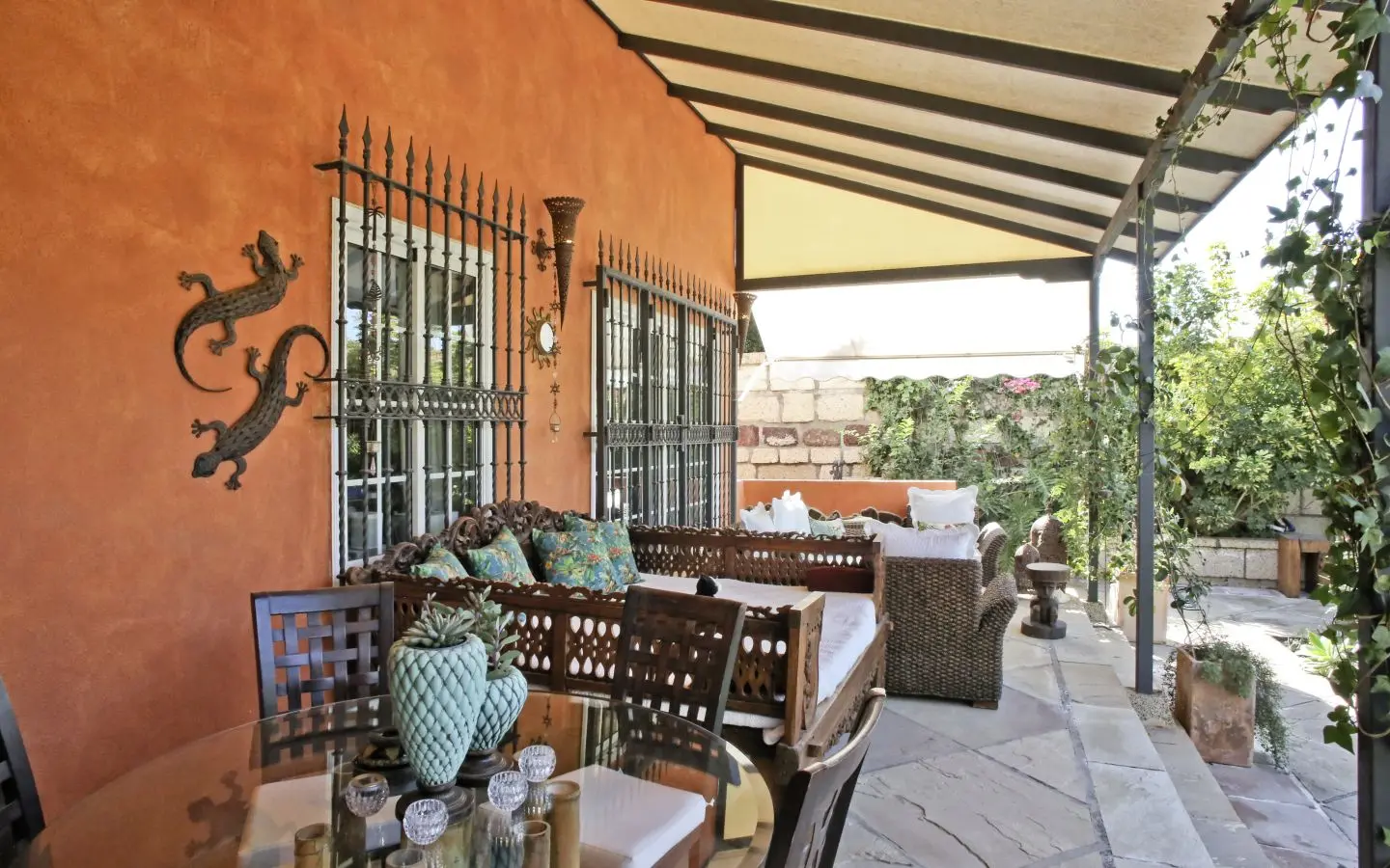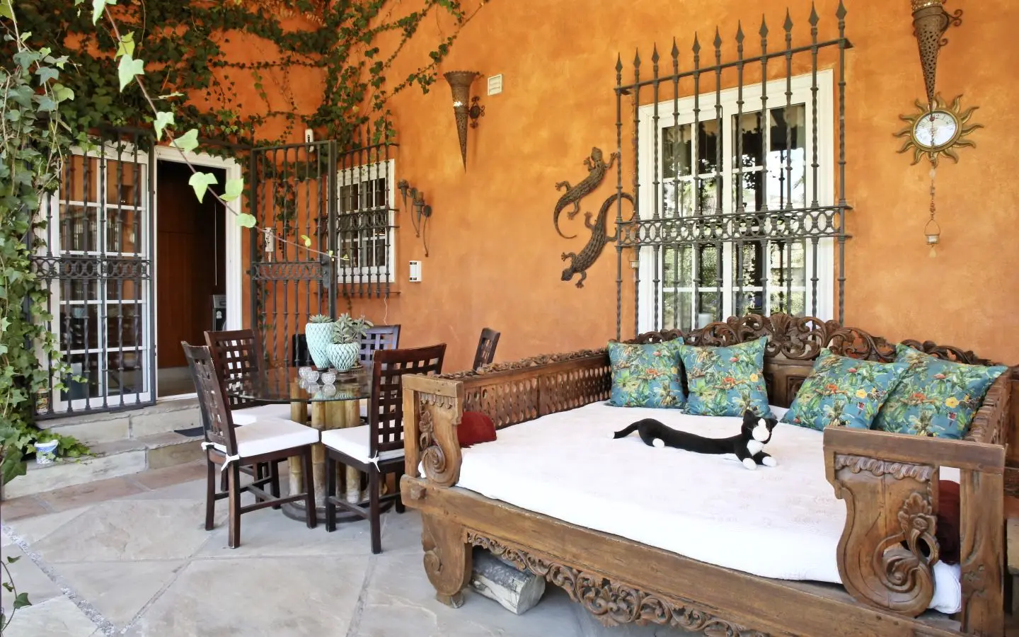 The heart of the house is the spacious living room, where the oriental décor creates a warm and welcoming atmosphere. There is also a piano here, perfect for setting the mood in the evenings! The kitchen is fully equipped with modern appliances and everything you need to prepare gourmet meals.