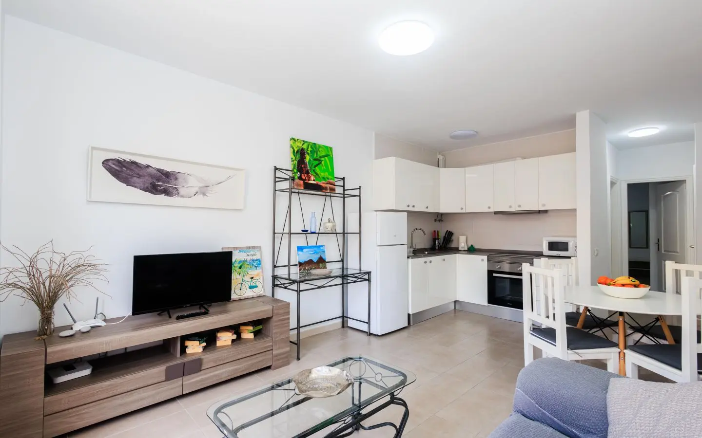 Experimenta el ritmo de la playa en este apartamento fresco y recién renovado, situado encima de la hermosa playa de Las Vistas en Los Cristianos. Aquí vives con proximidad directa al mar y todas las comodidades que puedas desear.